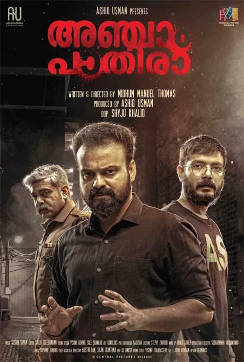 فیلم ساعت پنج صبح یا به انگلیسی دانلود فیلم Anjaam Pathiraa 2020 اثری در ژانر درام هیجان انگیز محصول سال 2020 کشور کشور هندوستان می باشد. این فیلم هندی به کارگردانی و نویسندگی داستان و فیلمنامه میدهون منوئل توماس ساخته شده و در تاریخ 10 ژانویه 2020 در کشور هندوستان با بودجه 243 هزار دلاری به اکران عمومی رسیده که در مجموع توانسته در اکران داخلی و خارجی خود به فروش بیش از 2.5 میلیون دلاری نیز دست یابد. فیلم سینمایی هندی Anjaam Pathiraa 2020 علاوه بر موفقیت در گیشه هندوستان با توجه به بودجه اندک خود، در جشنواره های مختلف نیز حضور یافت و توانست جوایز متعددی همچون بهترین فیلمنامه و بهترین موسیقی را نیز به دست آورد.